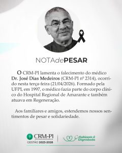 Aos familiares e amigos do Dr. José Dias Medeiros, nossos sentimentos de pesar e solidaridade.